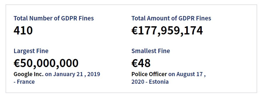 Your organisation is explicitly accountable for complying with the other six principles and should be able to demonstrate compliance when requested by GDPR authorities. Failure to do so could result in a financial penalty – which since May 2018 have ranged from €48 to €50,000,000.