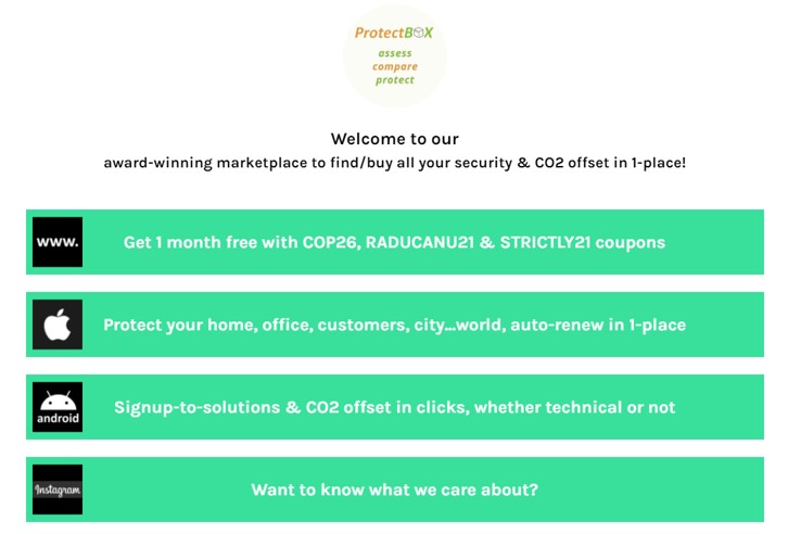 To mark our attendance at COP26, we are offering you 1 month free with us. Click here to pick the best plan for your home and work’s security, and use coupon COP26 at checkout.